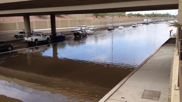#Flooding on US 60 westbound at Kyrene overpass. One lane open. #azwx #monsoon pic.twitter.com/x2FhqZ8C3U