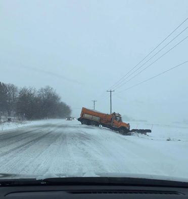 Plow stuck in ditch on Monee Manhattan Rd near Frankfort as of ~4pm CST. Photo via Michelle Gast. #ilwx #inwx