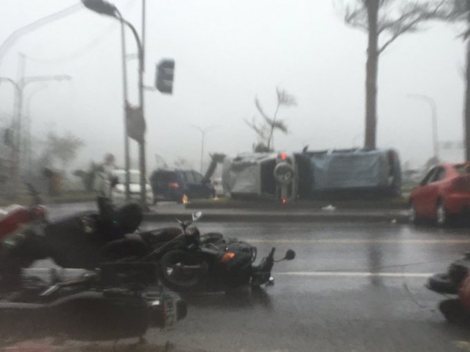 Looks like carnage in the streets out there, vehicles thrown around super #typhoon #Nepartak #Taitung #Taiwan