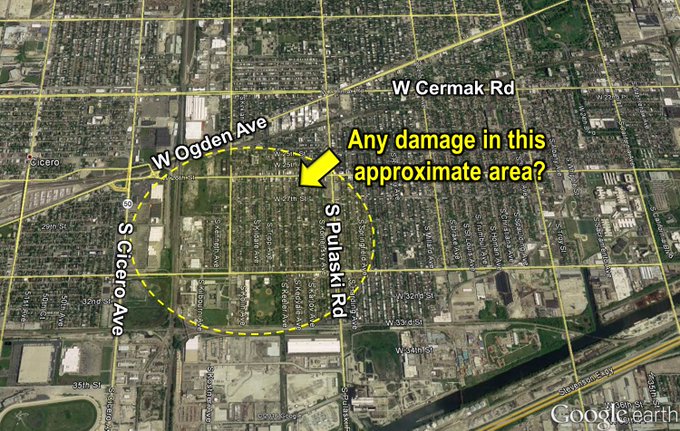 Based on assessment of photos, if there's any damage from landspout #tornado, approximate area is circled. #ilwx