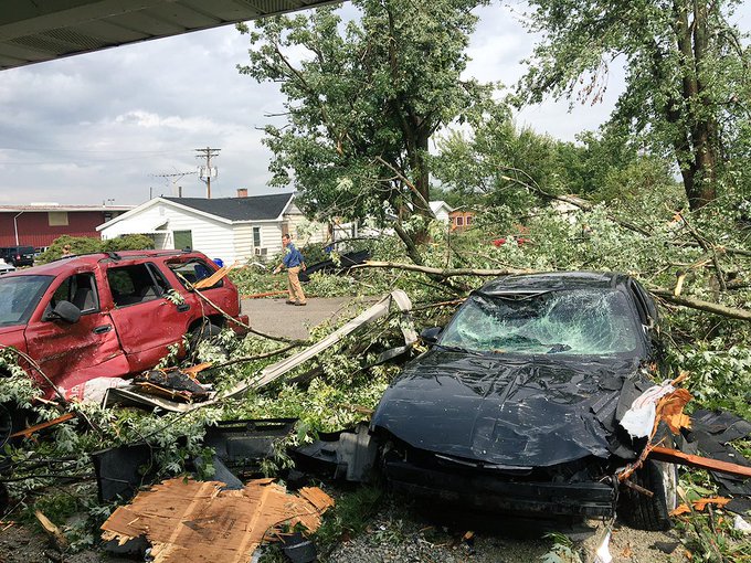 Damage of cars and houses in area of Dodge & Elizabeth St. Several power lines and trees down. @KokomoTribune